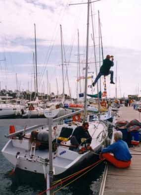 all’albero, su di una drizza si fissa una cima. In 3 persone si comincia