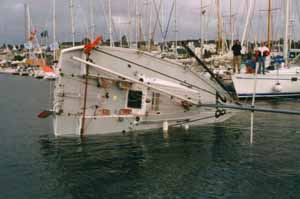 raddrizzamento. Il mini viene legato di prua e di poppa a circa 13