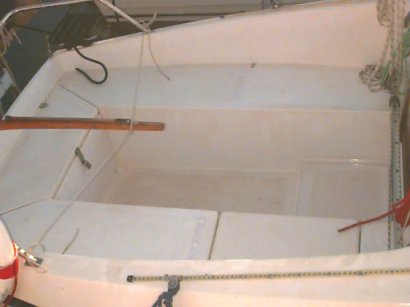 Il gavone sotto il pozzetto, quello accessibile dalla cabina (la mia barca ha il fuoribordo) ancora non è sfruttato bene. Ma ho già in mente una soluzione "copiata" da un altro armatore di Piviere. Consiste nel sistemare le cose dentro contenitori di plastica quadrati. Penso che stiverò lì le provviste.