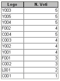 Nel prossimo turno si torna a votare per elinare un solo logo, ricordandosi che un voto eventualmente dato per L1, vale anche per L2 e viceversa.